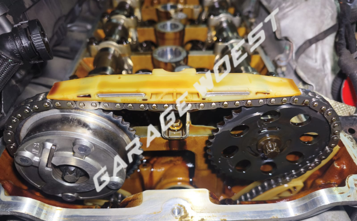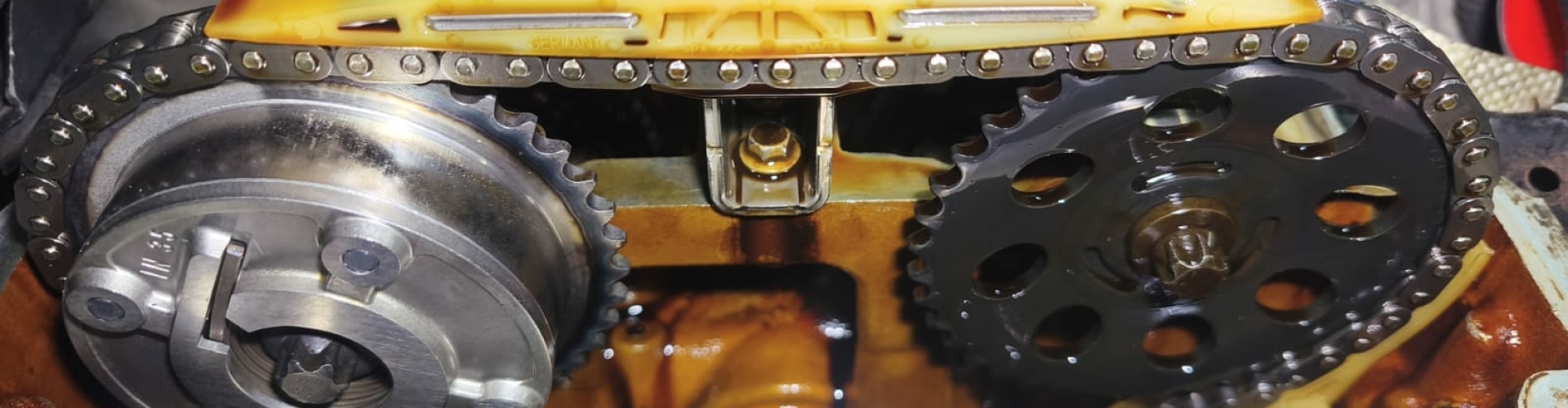 De motor is voorzien van een automatische kettingspanner met een minimaal en maximaal bereik. Naarmate de distributieketting slijt en uitrekt, schuift deze spanner verder uit om de ketting op spanning te houden. Wanneer de spanner zijn maximale stand heeft bereikt, is de ketting zodanig versleten dat deze niet langer veilig op spanning gehouden kan worden.